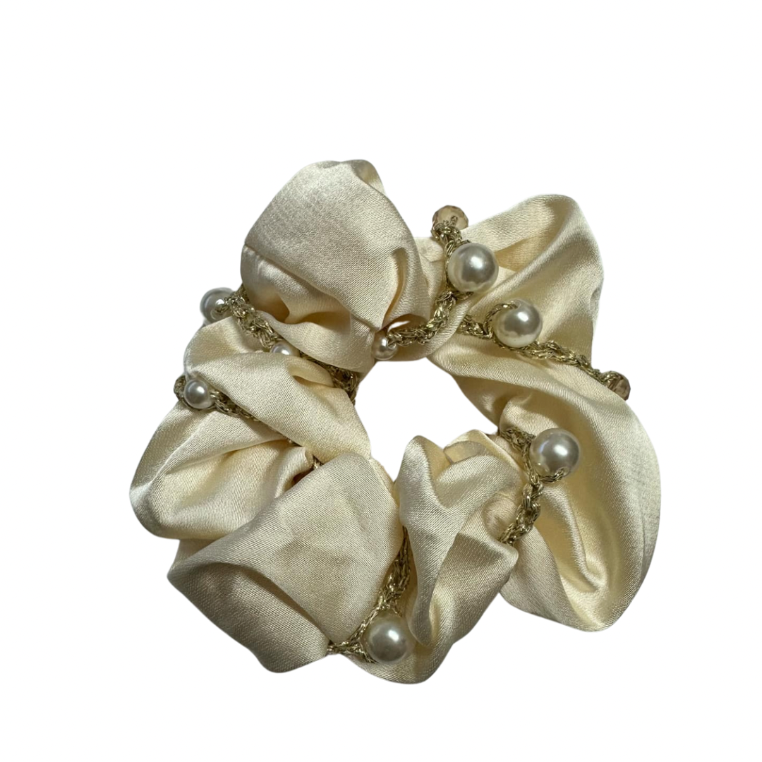 Cream pearl stain hair scrunchie