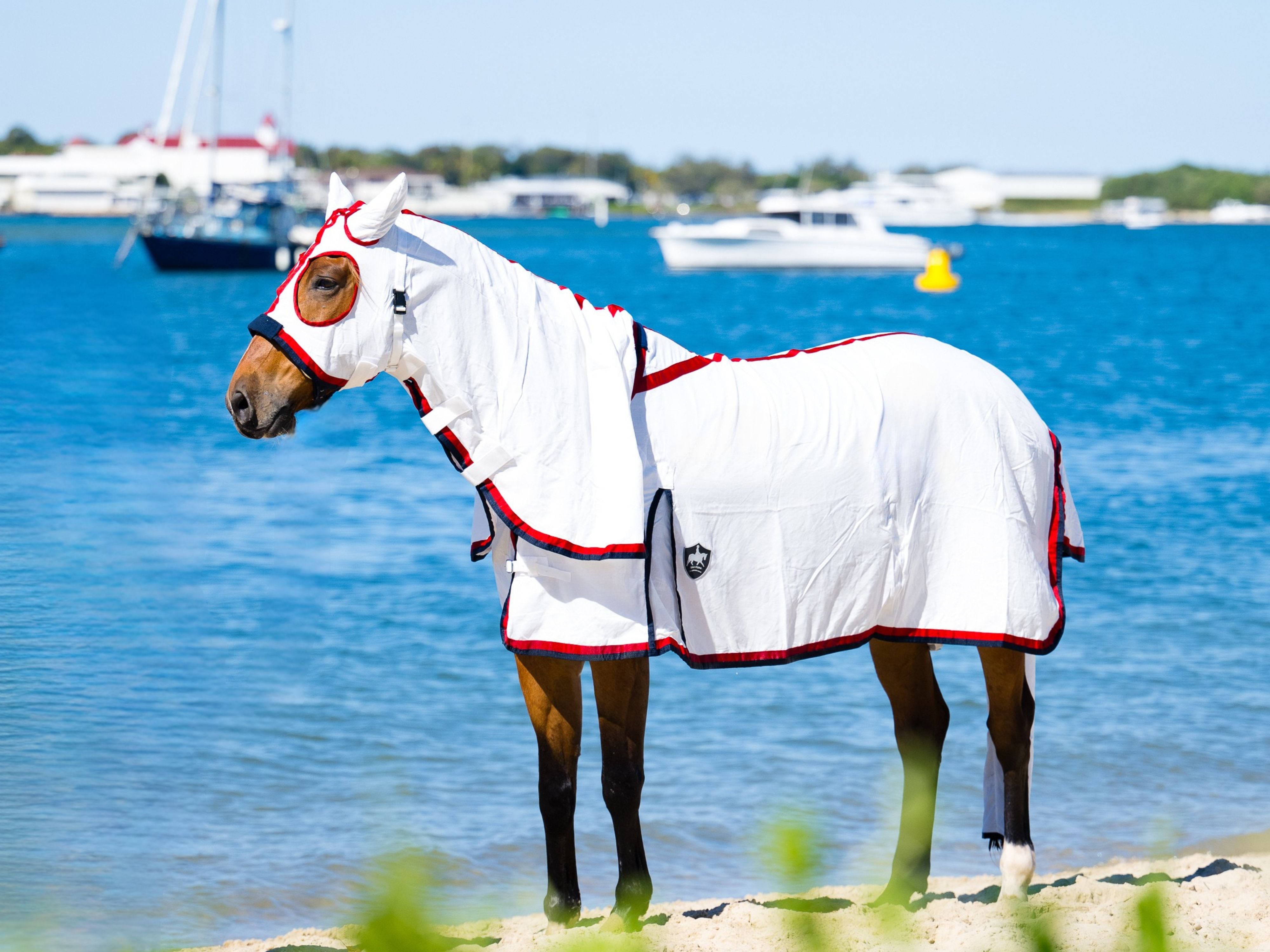 Gala Equine flags are the perfect light weight rug to keep your horses covered & safe from biting bugs (& that annoying sun bleaching!) weighted at just 200gsm, this airy, lightweight fabric is breathable and comfortable.