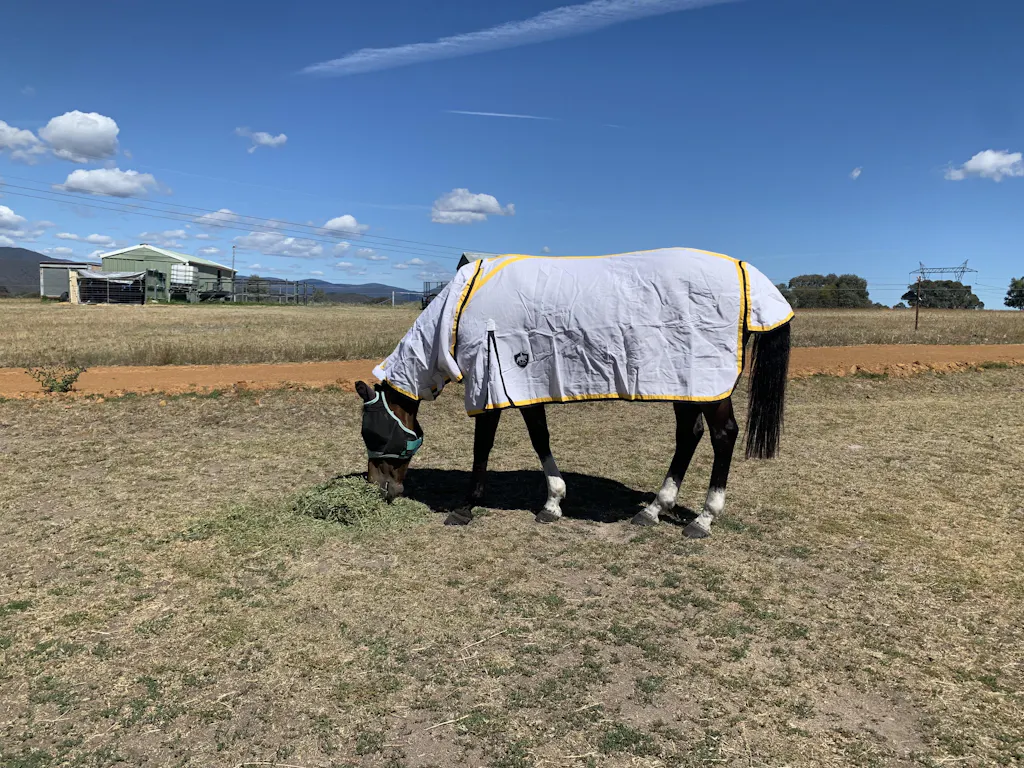 Gala Equine flags are the perfect light weight rug to keep your horses covered & safe from biting bugs (& that annoying sun bleaching!) weighted at just 200gsm, this airy, lightweight fabric is breathable and comfortable.