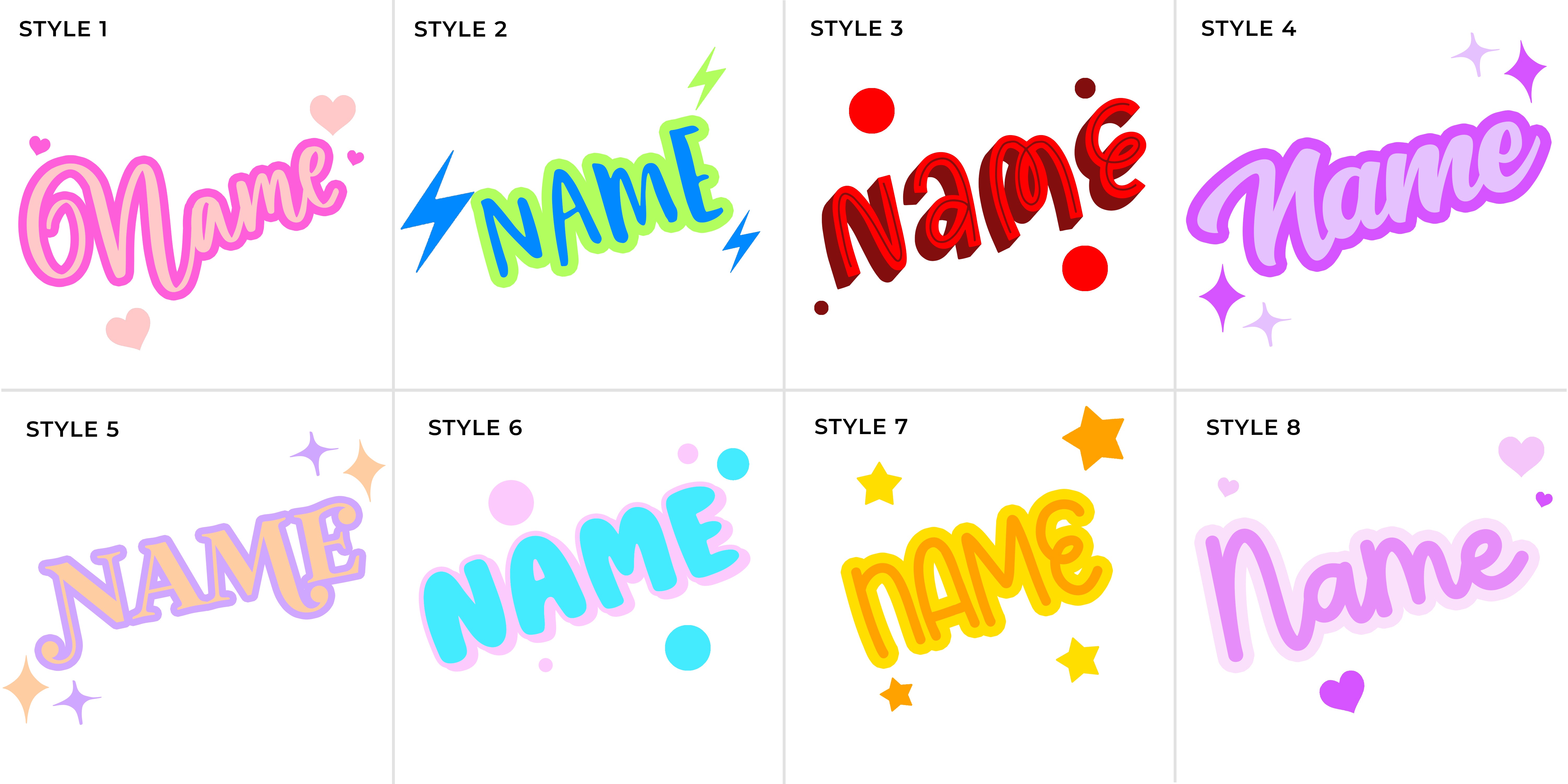 Choose from our range of pre-designed styles to create something truly unique! Custom made in your two chosen colours and name.