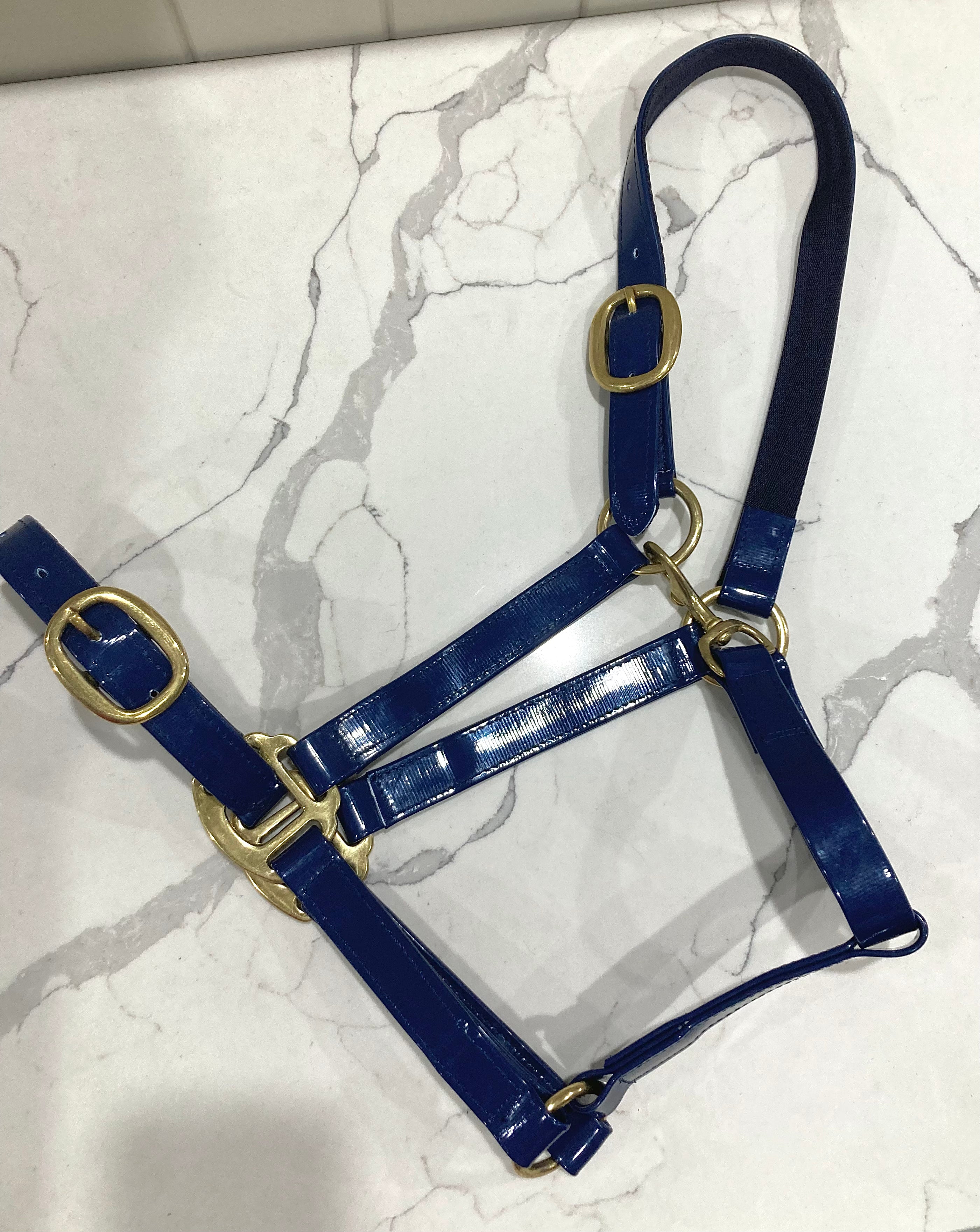 PVC Halter - Navy with Brass Buckles