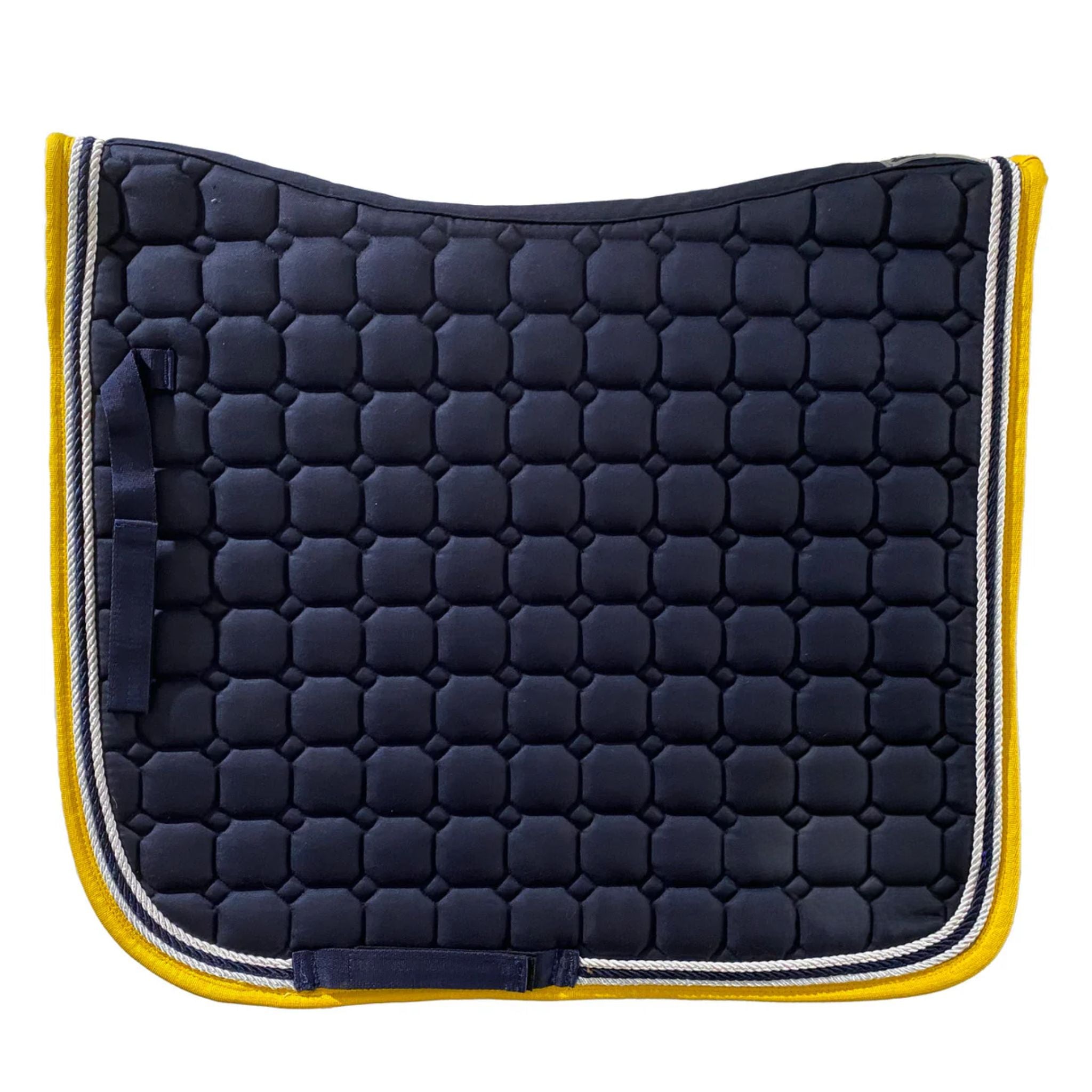 Quilted Saddle Pad - Navy with Yellow Gold Trim & Silver, Navy, White Ropes